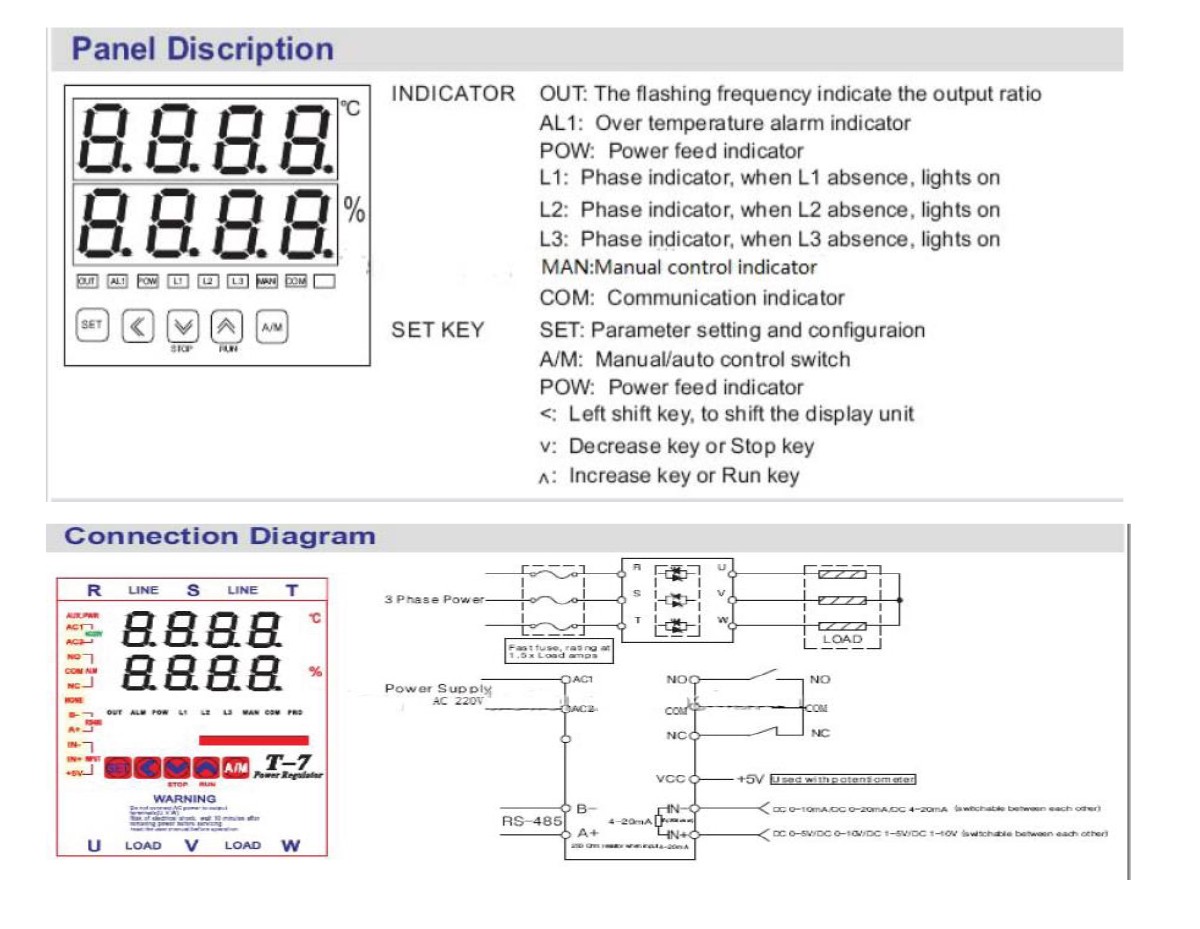4. Integrated heatsink with auto temperature detection with over temperature alarm,SCR output reduce to preset value after
